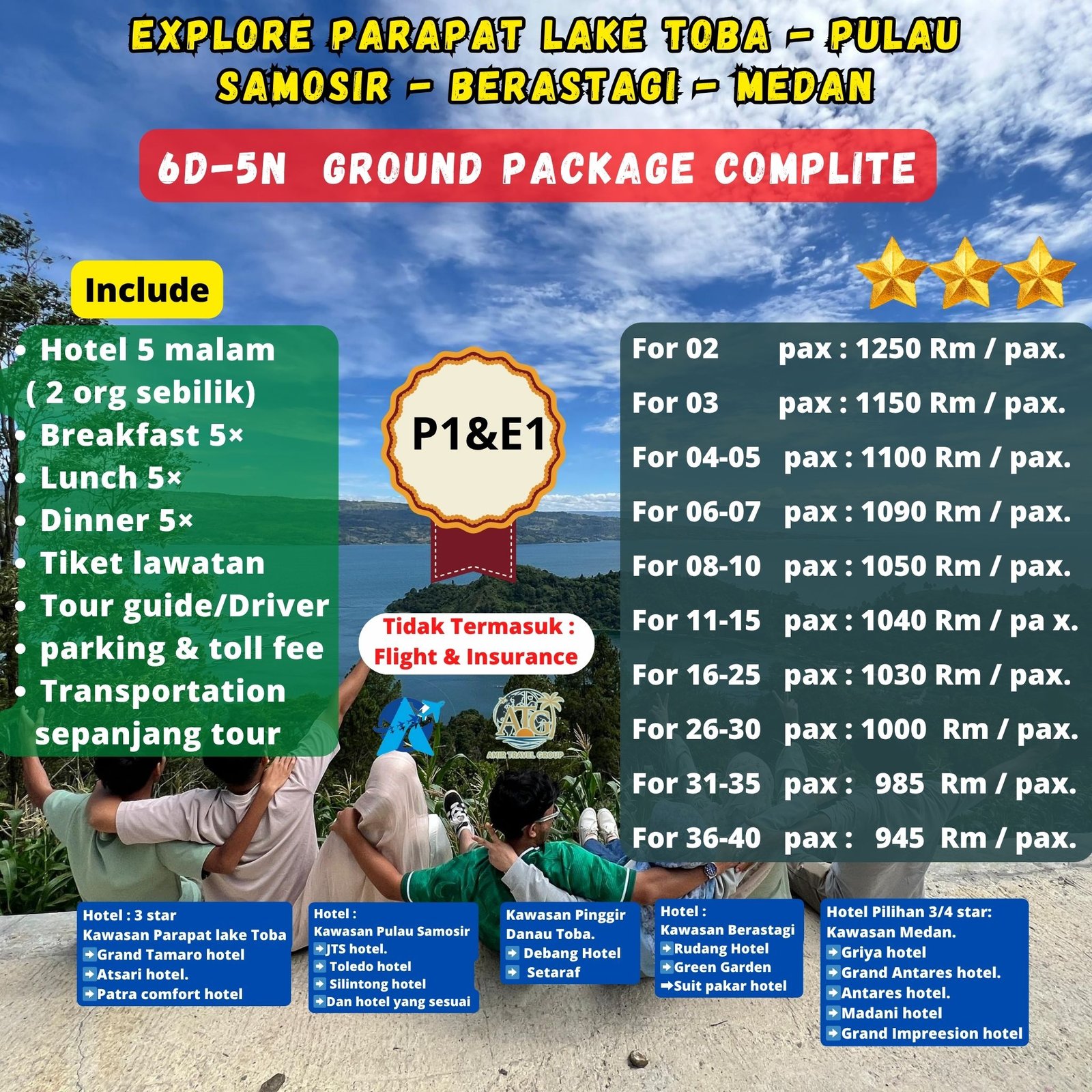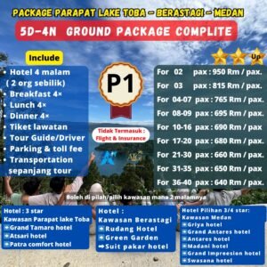 • P1 – Hotel standard di semua lokasi (Parapat, Berastagi, Medan).