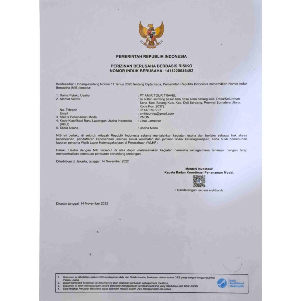 Nama syarikat rasmi: PT. AMIR TOUR TRAVEL